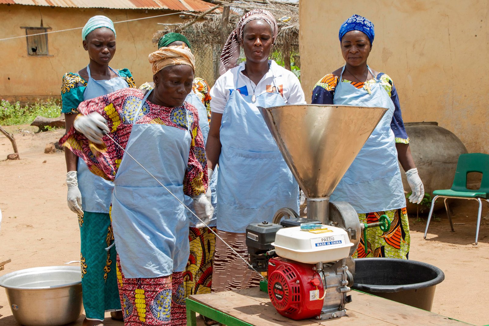 Across Africa, women are the backbone of agriculture. Yet, the tools they use are often rudimentary and demand hours of hard labour by hand. A project implemented by FAO and financed by Germany’s Agency for International Cooperation (GIZ), introduced practical, easy-to-use machines for rice, cassava and soybean processing to 15 cooperatives. The project replaced back-breaking manual work with small-scale mechanized tools including a rice dehusker and parboiler, and a cassava chipper which crushes the tough, peeled root into a mash for drying and further processing into gari or flour.